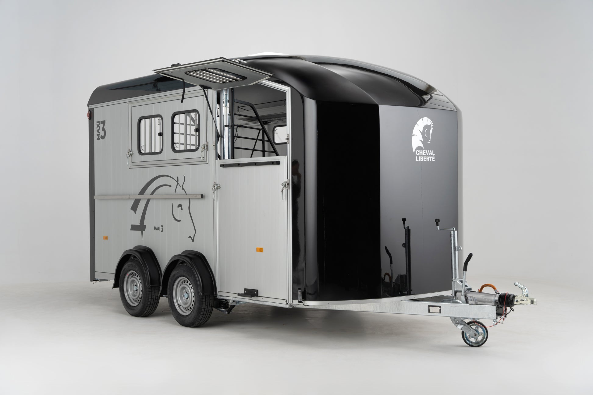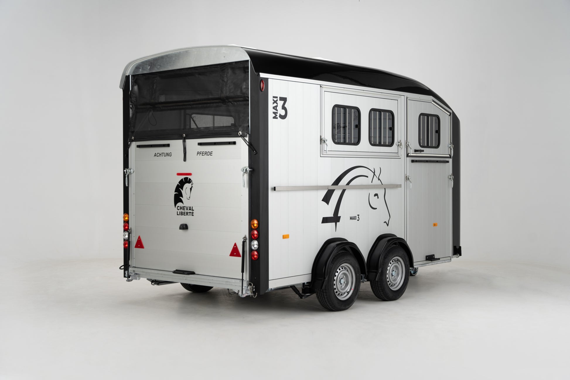 The Cheval Liberté Maxi 3 is a top-tier, 3-horse herringbone trailer, purpose-built for transporting 2 horses or three ponies with maximum comfort, safety, and ease. Featuring Pullman 2 suspension, a full rear ramp/barn door, and an integrated tack room, the Maxi 3 offers everything professionals and serious riders need in a high-quality horse trailer.